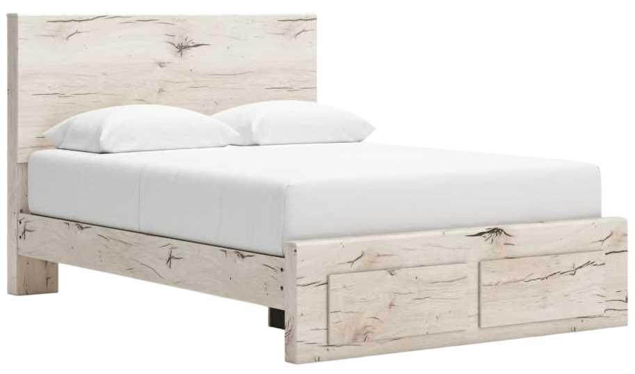 Includes panel headboard, storage footboard, platform rails and roll slats