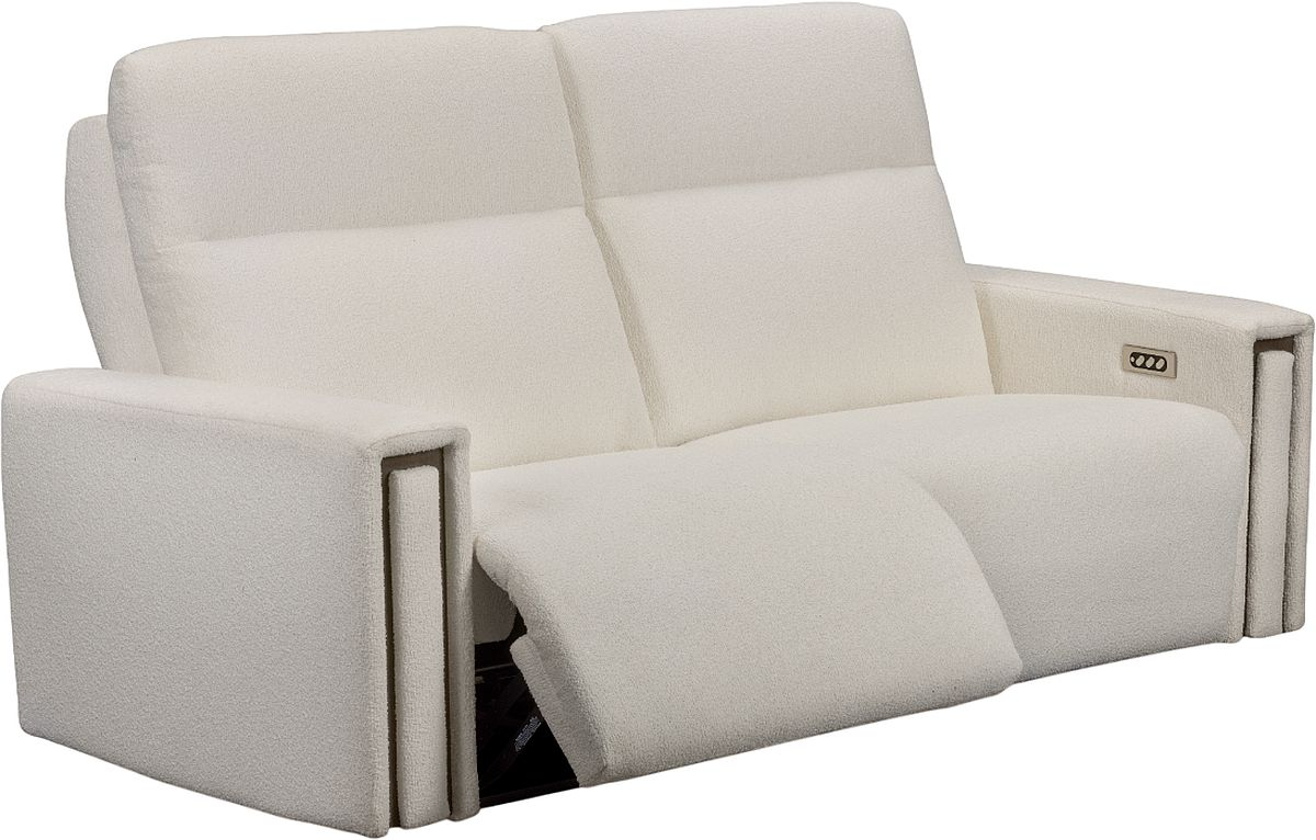 The Elran customizable Evelyn power reclining condo sofa features a contemporary design, power reclining mechanism with adjustable power headrest and stylish track armrests with a wood insert. It is available in fabric, leather/vinyl combination, or all leather.Read More