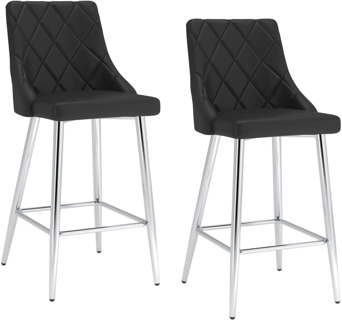 Comfortable, served seating atop a fixed height frame gives this counter stool stability and reliability. The diamond-stitched patterns on the faux leather cushioned upholstery will provide hours of comfort and the polished chrome finish will take your decor to the next level. Elevate your kitchen counters with these gorgeous contemporary stools.Read More