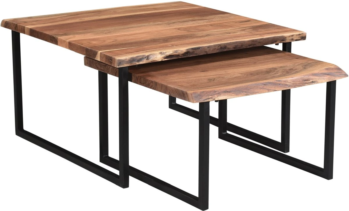 Versatile accent pieces are just what you need to make your space feel comfortable and lived-in. But you don't have to sacrifice style to achieve that. This 2-piece coffee table set has a gorgeous live-edge solid wood table top and a sturdy black iron frame - use both nested together or separate as needed.Read More