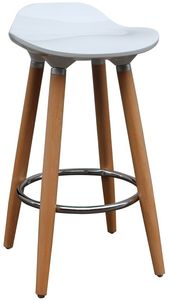 Let the curves of the seat and back on this stool provide you with hours of comfort, whether you are enjoying a drink with friend in your basement bar, or enjoying a lazy Sunday brunch at your kitchen counter. The white ABS plastic seat is a fresh addition to any decor. The natural finish on the beech wood legs and the chrome finish on the footrest combine to create a casual, modern feel.Read More