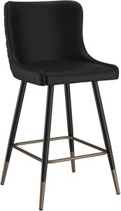 Find perfect, over-sized seating on this mid-century inspired counter stool. The contoured shape and plush, diamond-patterned tufting on the back provide comfort on one side and a dose of style on the other. Black metal legs with the gold dipped detail will provide sturdy support. Great for a casual kitchen setup or a formal basement bar.Read More