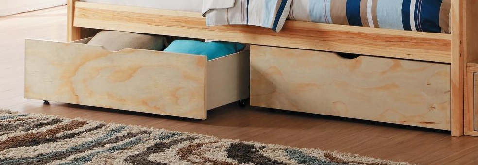 With options that allow for the perfect placement within your bedroom is the Bartly Collection. This transitional bedroom group is featured in a natural pine finish making it an appropriate choice for a number of youth bedroom settings. With twin over full, twin over twin, full over full configurations – along the newly available captains bed, with trundle that features two drawers, and twin/twin bunk with storage stair steps - the design allows you to choose the size that is right for your family. Two under bed options are available for the bunk beds – toy boxes that provide additional storage space or twin trundle that offers additional sleep space.Read More