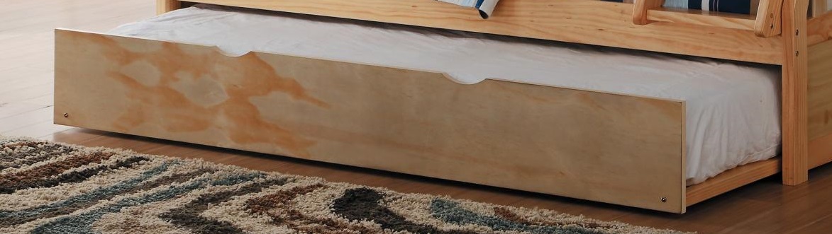 With options that allow for the perfect placement within your bedroom is the Bartly Collection. This transitional bedroom group is featured in a natural pine finish making it an appropriate choice for a number of youth bedroom settings. With twin over full, twin over twin, full over full configurations – along the newly available captains bed, with trundle that features two drawers, and twin/twin bunk with storage stair steps - the design allows you to choose the size that is right for your family. Two under bed options are available for the bunk beds – toy boxes that provide additional storage space or twin trundle that offers additional sleep space.Read More