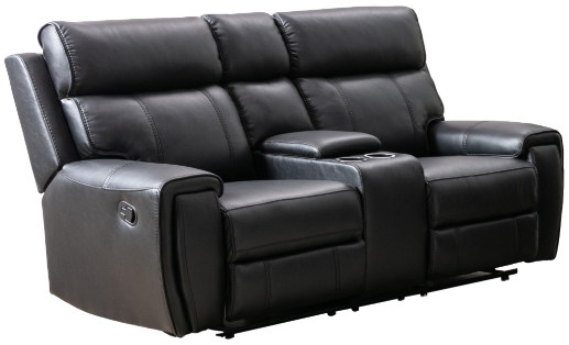 Thickly stuffed headrests and padded wraparound armrests testify to an impeccable attention to comfort, especially with dense foam over pocket springs to ensure long-lasting, relaxed seat construction. Double tab-pull mechanisms at either end give you the option to relax further by reclining with a simple pull of the latch, not to mention the additional convenience offered by the central lift-top storage console with two built-in cupholders. Also available in grey leather gel.