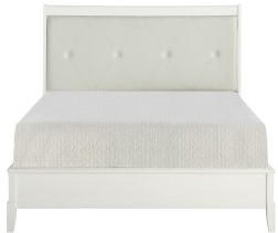 The white finish, over birch veneer, dramatically enhances the wood’s grain and is perfectly accented by the white faux leather insert with x-stitching and button-tufting that fronts the Queen headboard.Read More