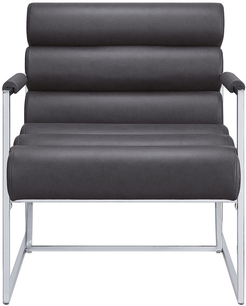 Foam-padded for utmost comfort with additional protection along the arms, the Juno accent chair is also furnished with beautiful grey faux leather upholstery and a gleaming chrome finish, ensuring your home is enriched with both contemporary style and functional comfort. Available in the following combinations: chrome-plated with grey or charcoal faux leather, or gold-plated with black or sand velvet.