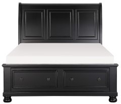 The queen sleigh platform bed features a black sand-through finish can transition from traditional to country casual, with accents including - antiqued bronze knob hardware on the footboard’s drawer’s framed fronts and bun feet providing support.Read More