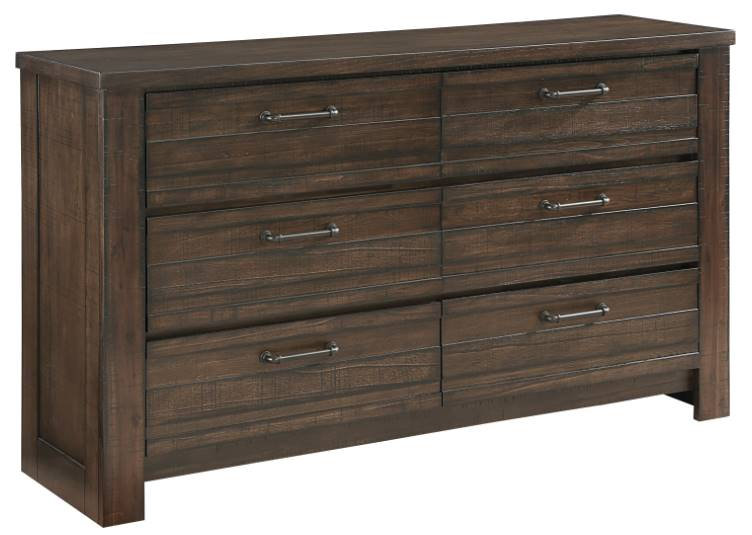 Rustic styling combined with hints of industrial practicality create the Longview Collection’s straightforward look making for a perfect addition to your bedroom. A dark brown finish is utilized over birch veneer, highlighting the wood’s grain. The planked framing gives the dresser a rusticated aesthetic while the metal bar hardware lends an industrial touch.Read More