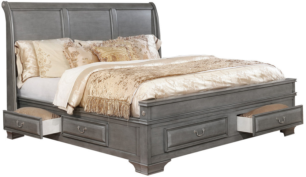 The Milton Collection has undeniable classic charm, especially with transitional styling and a grey wood finish; it also features a plethora of function. The bed's sleigh headboard with panel detailing immediately catches the eye.Read More