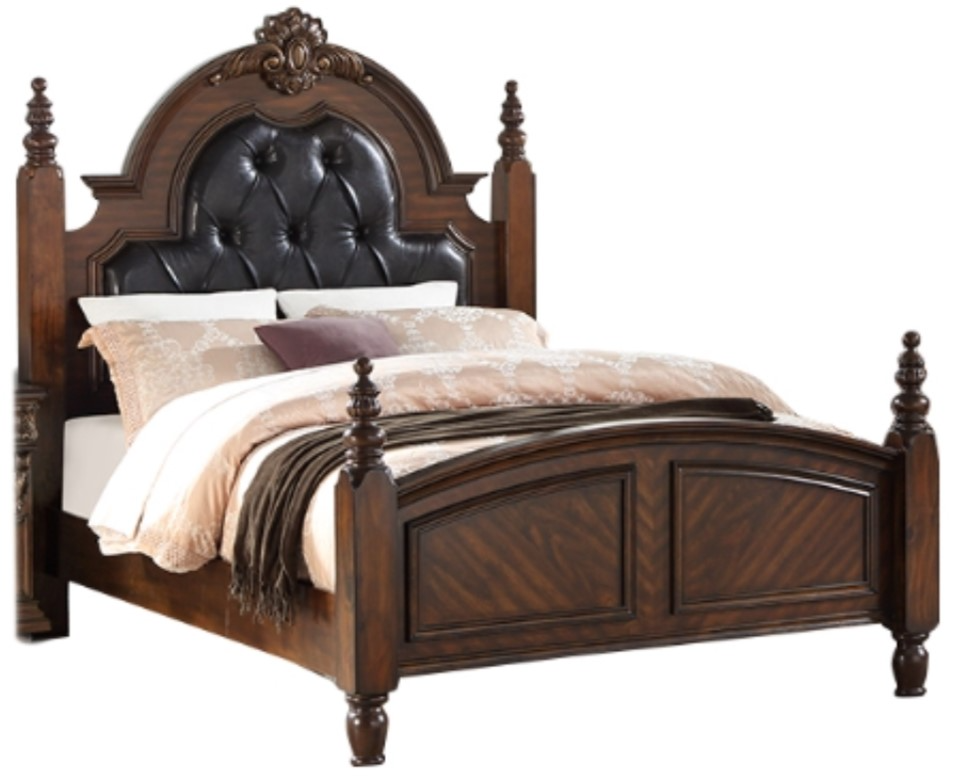 Experience the grandeur of a bygone era with the exquisite Othello Collection. This four-poster King Bed is a masterpiece of craftsmanship and design, showcasing a routed keystone-style headboard upholstered with deep brown faux leather and embellished by button tufting and ornate gold-tipped carved detailing.Read More