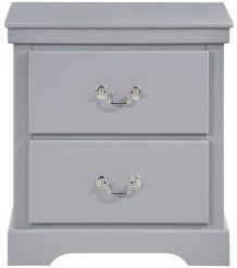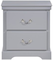 The gray painted finish allows for excellent versatility of placement and decorative inspiration. The traditional styling of the chrome bale and pull hardware complements the nightstand lending to the classic profile.Read More