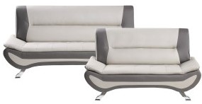 Bringing to mind the sleek styling of an Italian race car, bold contemporary styling creates eye-catching drama for your living room with the Veloce Collection. colour blocked beige and gray faux leather covers the ultra-low profile love seat, while chrome legs provide support.Read More