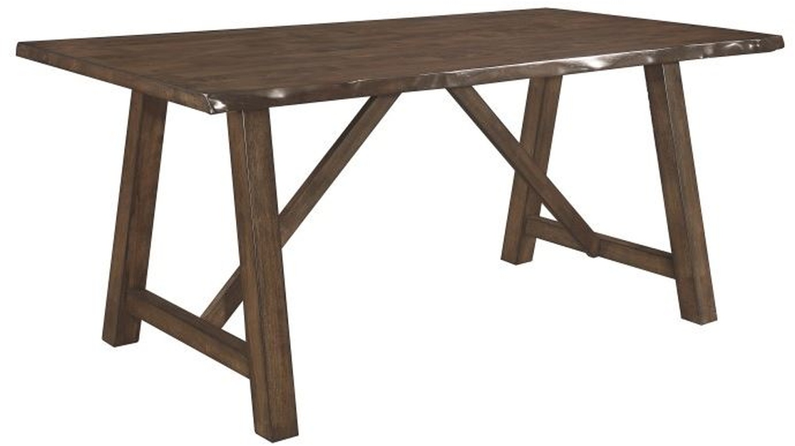 Pairing the natural form of wood with a modern profile creates the look of the Whittaker Collection. Live edge Asian hardwood is finished in brown, with light burnishing, highlighting the natural grain, a design feature that pairs elegantly with the natural contours of the dining table.