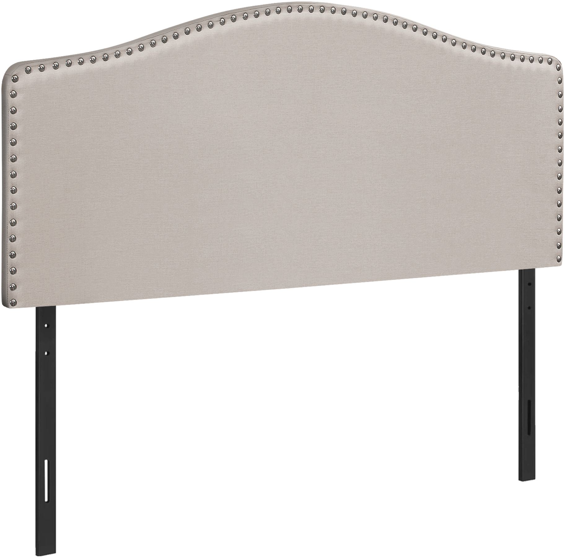 Combining modern materials and a classic silhouette, this upholstered headboard panel in a beige linen-look fabric brings timeless style to any bedroom. Silver-finish nailheads create an eye-catching frame around the gently arched top and straight sides. Upholstered with extra padding and smooth-to-the-touch fabric, this headboard panel provides an ultra-soft feel for a comfortable night's sleep. Streamlined and compact, this headboard adjusts easily to your desired height with any new or existing bed frame and is ideal for any size bedroom.