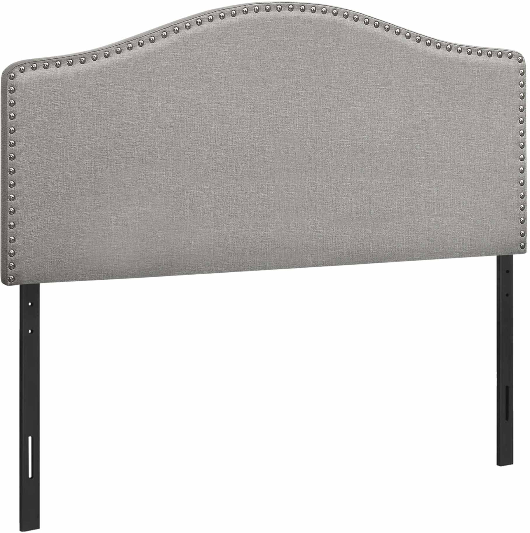 Combining modern materials and a classic silhouette, this upholstered headboard panel in a grey linen-look fabric brings timeless style to any bedroom. Chrome-finish nailheads create an eye-catching frame around the gently arched top and straight sides. Upholstered with extra padding and smooth-to-the-touch fabric, this headboard panel provides an ultra-soft feel for a comfortable night's sleep. Streamlined and compact, this headboard adjusts easily to your desired height with any new or existing bed frame and is ideal for any size bedroom.