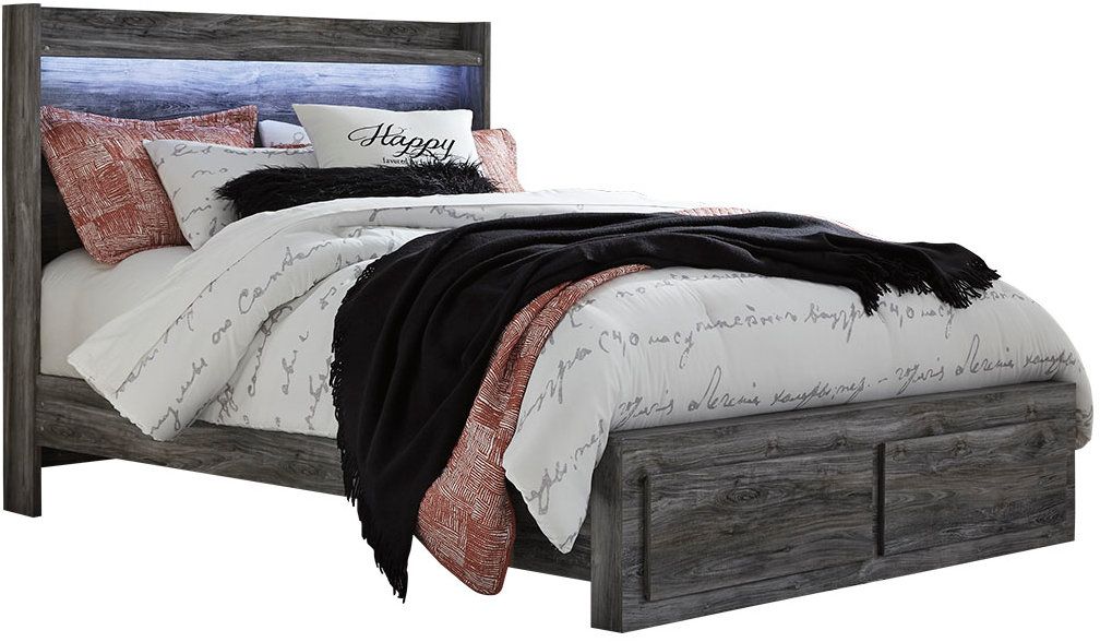 Rest in the casually cool style and practicality of this queen panel storage bed. Its driftwood and smoky finish gives this bed an easy-going vibe that's perfect for creating a relaxed getaway in the room. Two underbed storage drawers provide ample room for stowing away spare bedding and more. Clean lines and modern charm blend for a fuss-free look.Read More