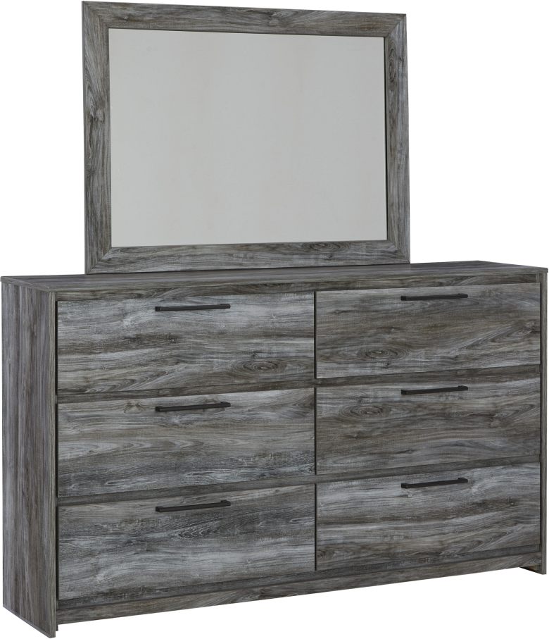 Casually cool style and lots of storage go hand in hand with this dresser with mirror. Its driftwood and smoky finish create an easy-going vibe that's perfect for setting the scene of a relaxed getaway. Six roomy drawers give you the space needed for stowing away clothes and more. Clean lines and modern handles provide a fuss-free look.Read More