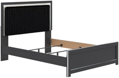 Includes upholstered panel headboard, panel footboard and panel rails